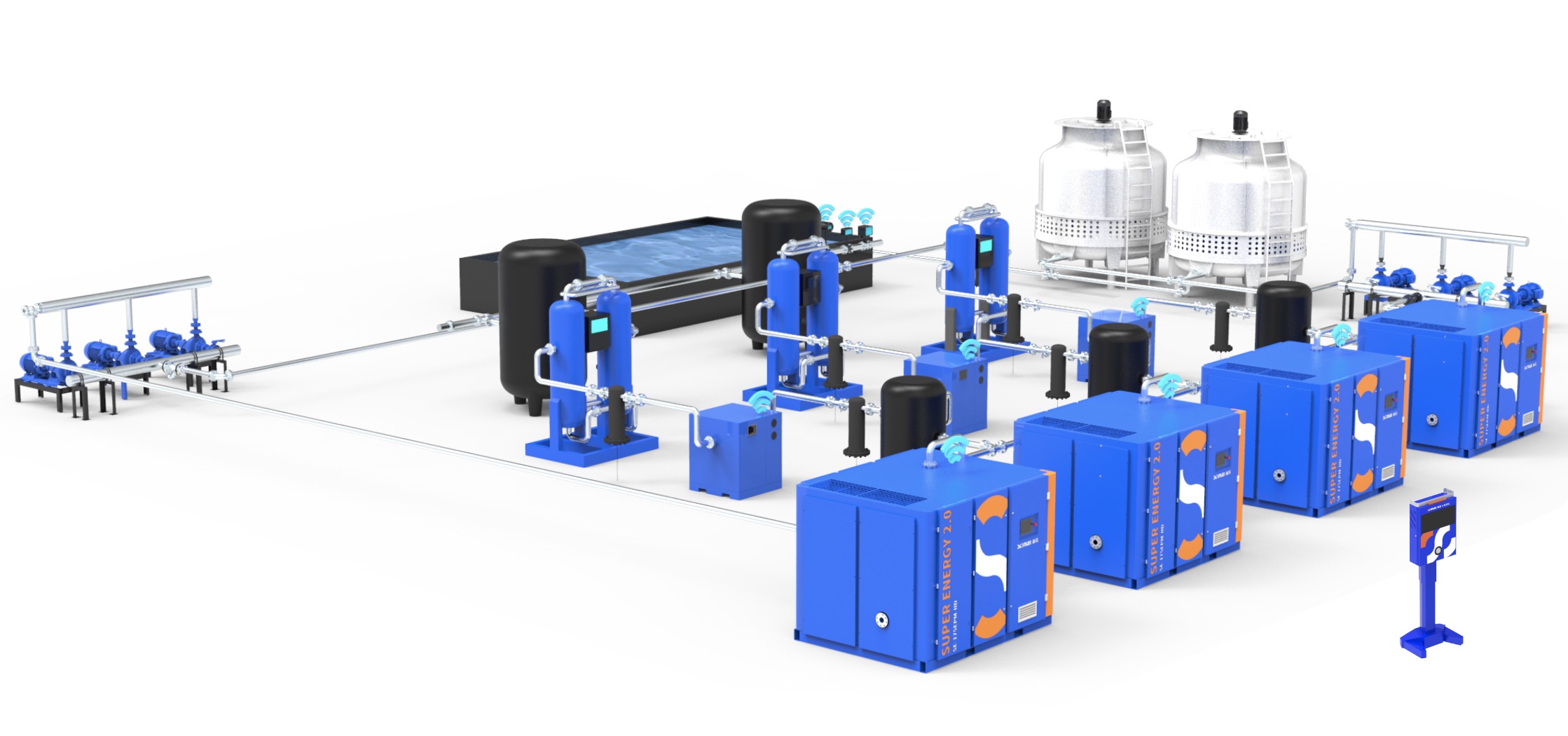 所以将多台空气压缩机组成机群进行集中控制,成为行业内认同的一种有效节能办法。从单机设备的粗放型管控压缩空气系统的精细化管控是建设智能工厂的基础。由此看来,空压机节能不等于压缩空气节能,而压缩空气系统节能才是真正的节能。